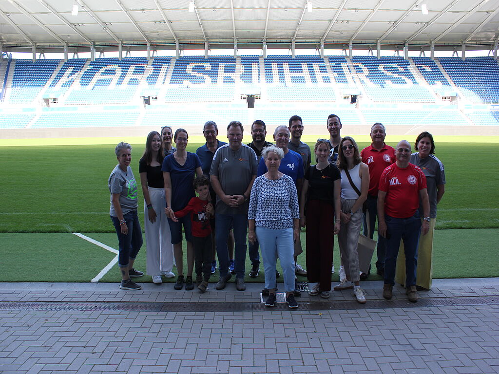 Nach dem Mittagessen zog die Truppe in Richtung KSC, wo uns ein engagierter und kundiger Guide auf eine ausführliche Tour durchs Wildparkstadion nahm. Dass ein Fußballstadion weit mehr als nur das Spielfeld und die Zuschauertribünen bietet, wurde uns durch diesen Blick hinter die Kulissen verdeutlicht.