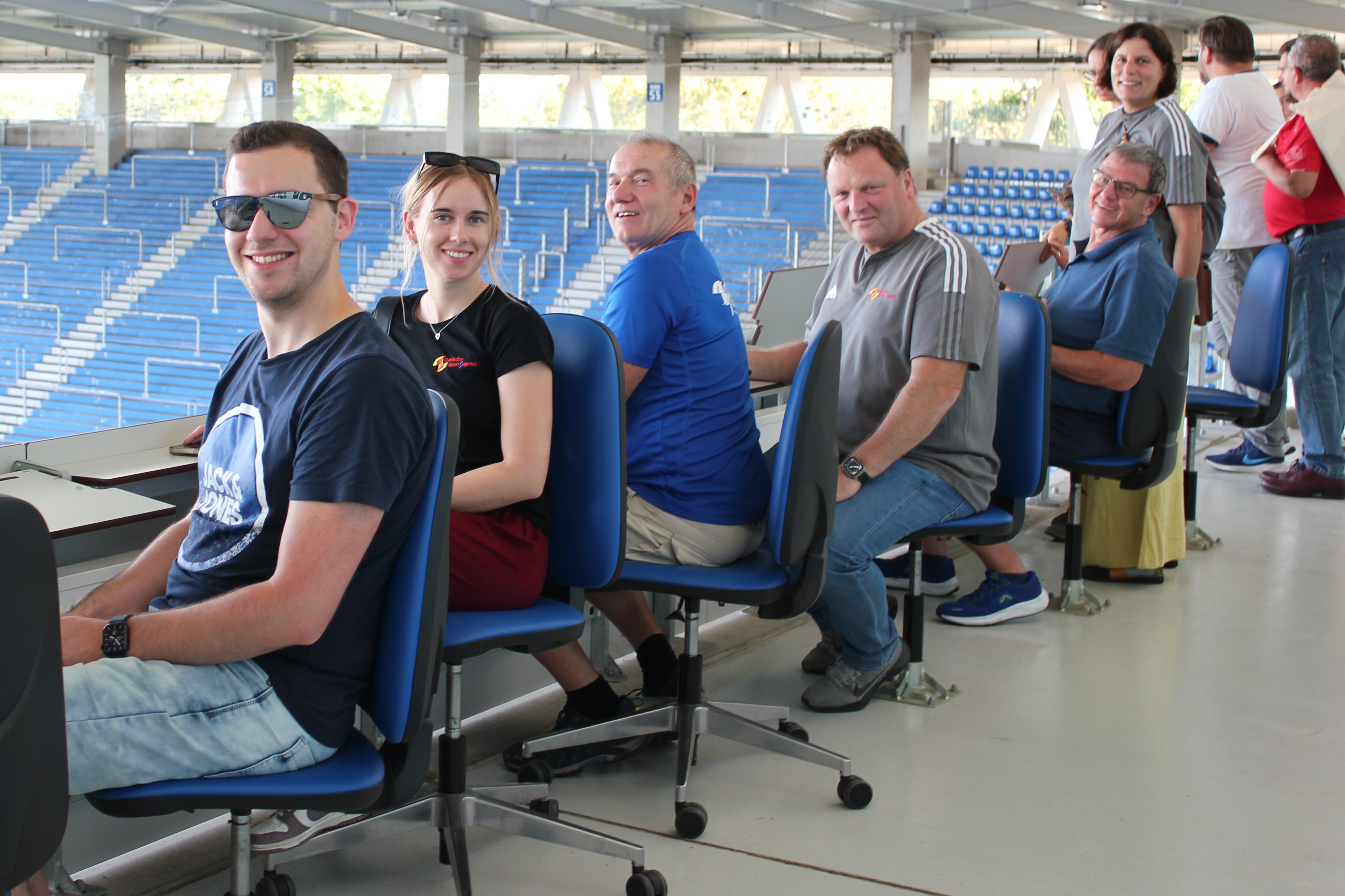 Nach dem Mittagessen zog die Truppe in Richtung KSC, wo uns ein engagierter und kundiger Guide auf eine ausführliche Tour durchs Wildparkstadion nahm. Dass ein Fußballstadion weit mehr als nur das Spielfeld und die Zuschauertribünen bietet, wurde uns durch diesen Blick hinter die Kulissen verdeutlicht.